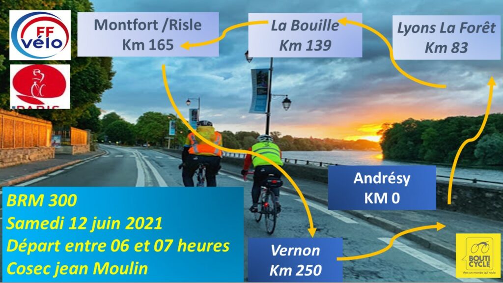 Andrésy Cyclo organise ce samedi 12 juin son traditionnel BRM 300 à la place du BRM 600 initialement prévu le weekend du 5 au 6 juin. Des informations plus précises en cliquant sur l’affiche !